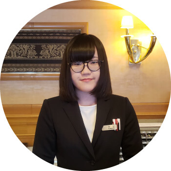 2018年入社 林 姍澐(リン サンウン) 主な仕事 予約データの処理、電話対応 お客様の笑顔や、感謝されることにやりがいを感じていました。フロントにいた時は、わからない言葉をたくさん勉強することができました。